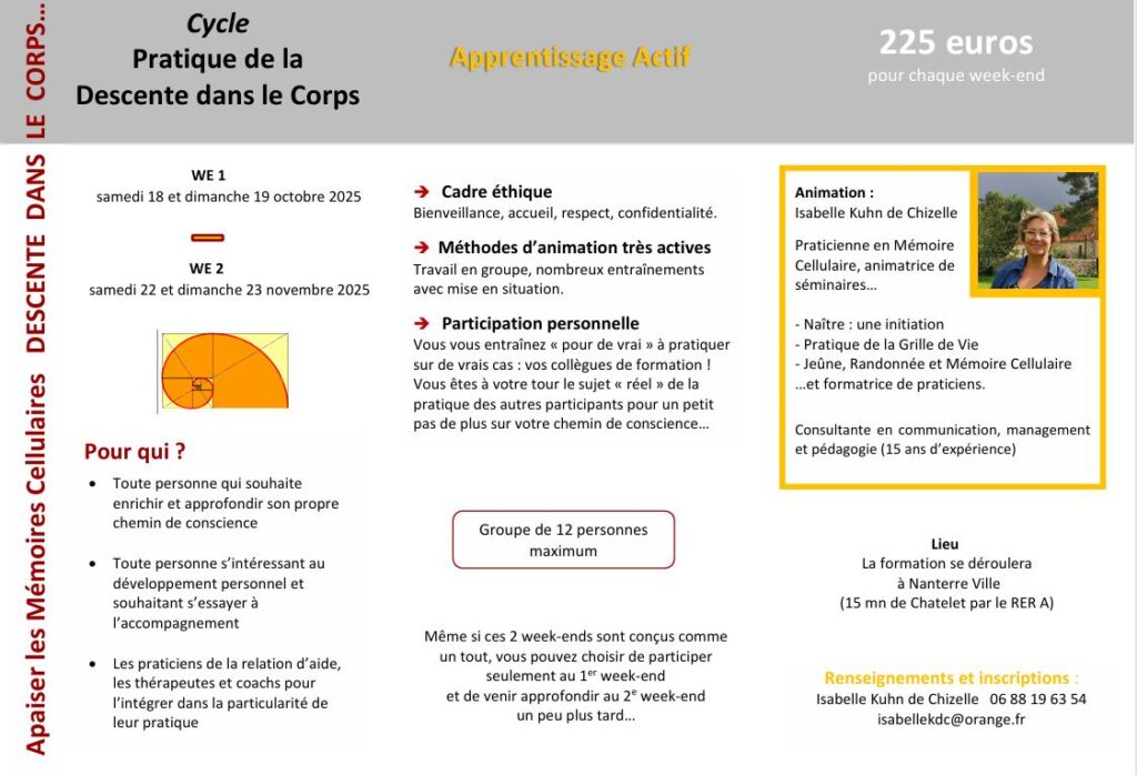 Cycle de 2 week-ends Pratique de la Descente dans le Corps